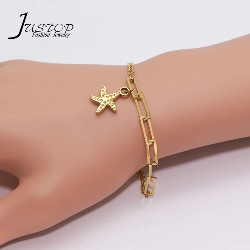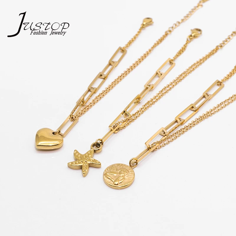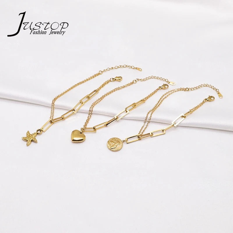 Stainless Steel 18K Gold Plated Women's Accessories Ladies Elegant Star Coin Jewelry Making Heart Pendant Charms Bracelet